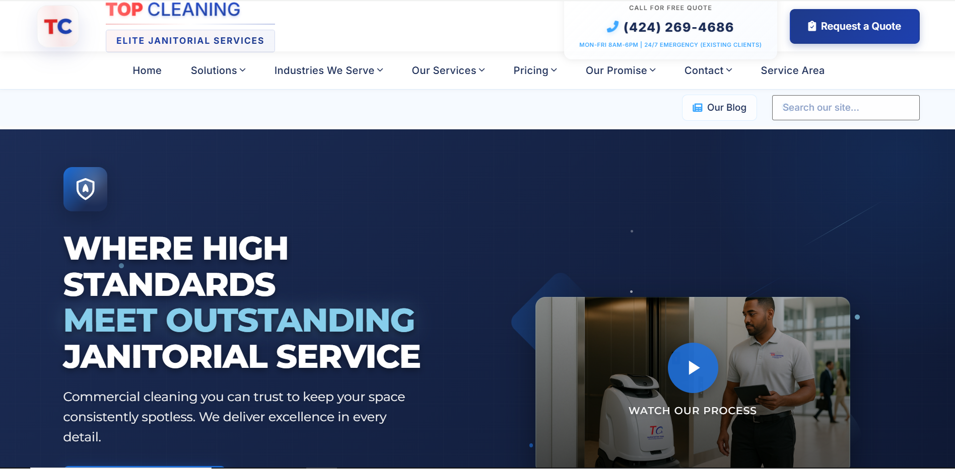 Modernized a commercial cleaning service's online presence with a professional, trust-building website focused on service clarity and easy booking.